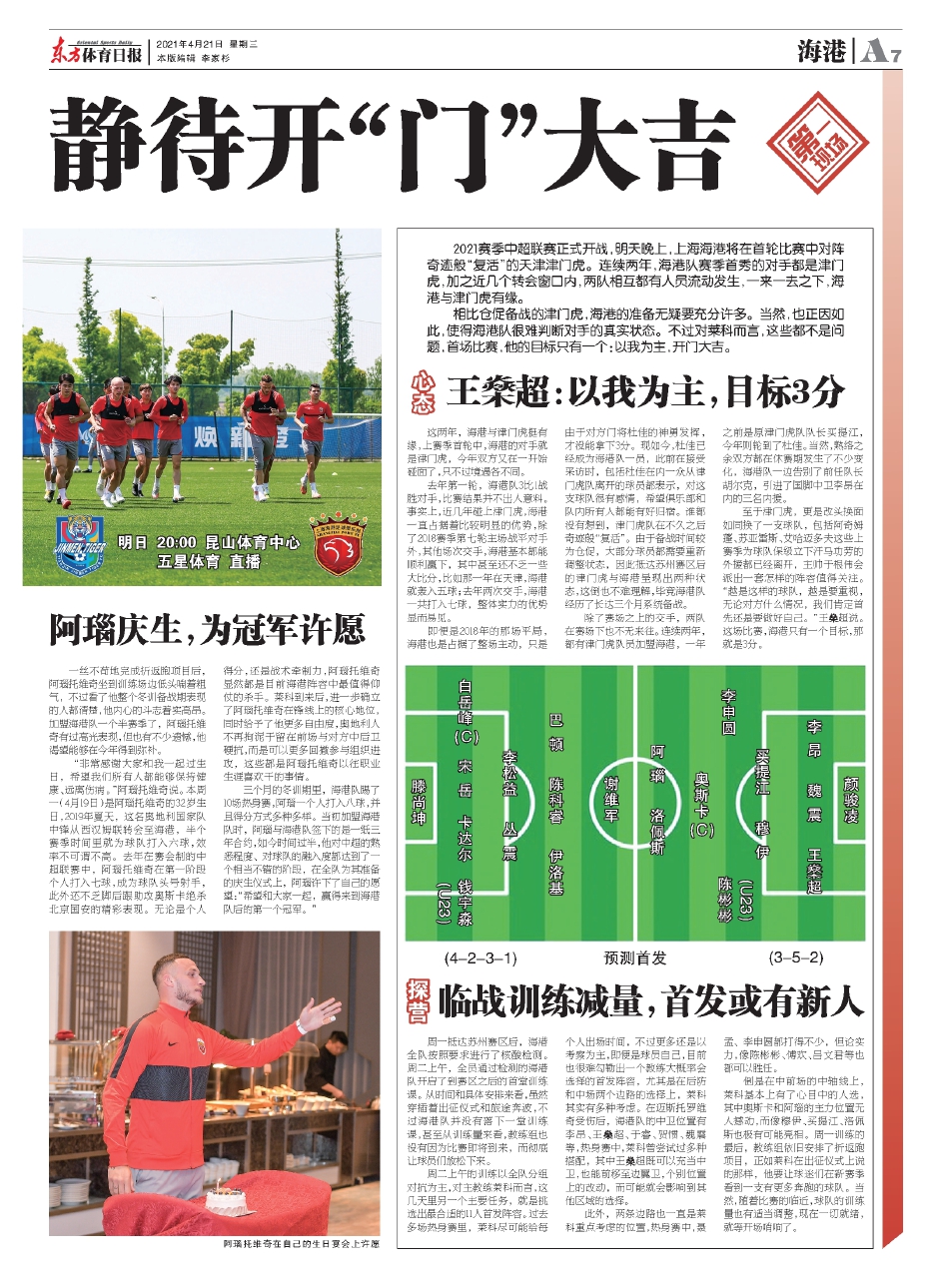 相比仓促备战的津门虎,海港的准备无疑要充分许多。当然,也正因如此,使得海港队很难判断对手的真实状态。不过对莱科而言,这些都不是问题,首场比赛,他的目标只有一个:以我为主,开门大吉。