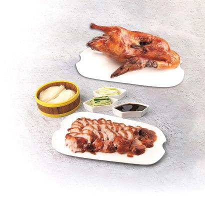 在燕云楼吃鸭子,搭配最简单的京葱、黄瓜丝、甜面酱,只为突出鸭子的味道。将鸭子片成108片薄片,摆成鱼鳞状,鸭子连皮带肉,皮肉不能分离,太薄易散,太厚片不到108片,对片鸭子师傅的刀工要求非常高。用荷叶饼包着烤鸭、甜面酱、葱丝、黄瓜丝。咬上一口,鸭香、葱香、酱香、麦香等多重香气叠加,这种滋味尝过便知。