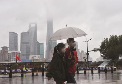 随着昨晚北方冷空气来袭,一夜之间,申城气温明显一路下滑,比昨天整整下降了10℃左右。今晨,外滩风大雨急,街头的路人都添加了外套,感觉依旧有些冷飕飕 杨建正 摄影报道