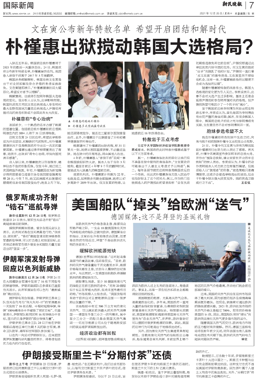 圣诞前夕,一个熟悉的名字占据了韩媒的显著位置,包括前总统朴槿惠和前总理韩明淑在内的3094人将于31日获得特赦。