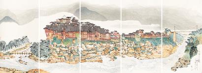 ◆陈家泠《赤水河畔丙安镇》,国画,100×220cm,2017