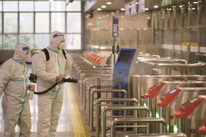 春运临近,防疫工作成为上海各大火车站的重中之重。今天上午,工作人员在铁路上海站候车室喷洒消毒液。春运期间,该站点日间将每2小时进行一次喷洒消毒加保洁擦抹消毒,并在晚间进行深度消毒1次。车站工作人员也加大巡逻频率,提醒旅客规范佩戴口罩。 本报记者 陈梦泽 摄影报道