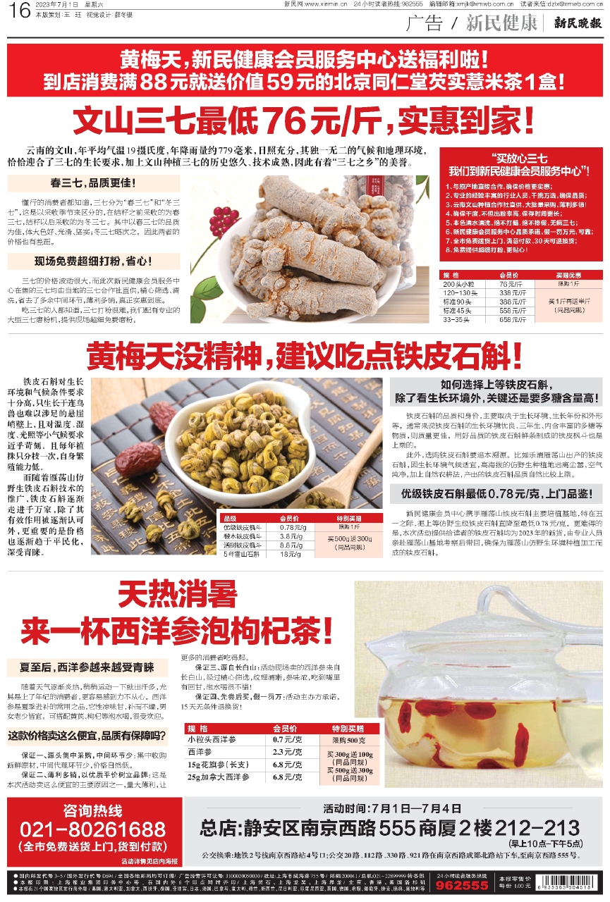 新民健康会员中心携手雁荡山铁皮石斛主要培植基地,特在五一之际,把上等仿野生级铁皮石斛直降至最低0.78元/克。更难得的是,本次活动提供给读者的铁皮石斛均为2023年的新货,由专业人员亲赴雁荡山基地考察后带回,确保为雁荡山仿野生环境种植加工而成的铁皮石斛。