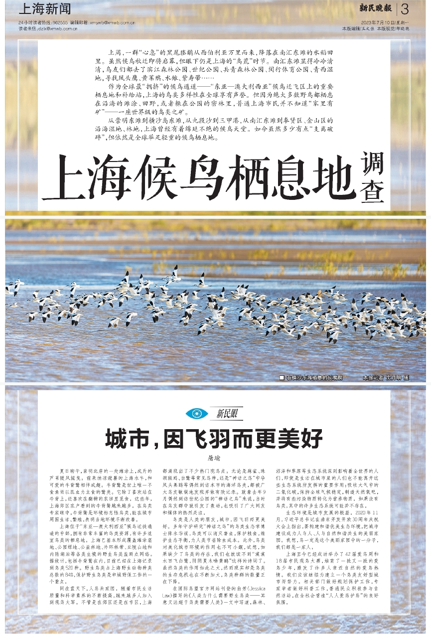 从崇明东滩到横沙岛东滩,从九段沙到三甲港,从南汇东滩到奉贤区、金山区的沿海湿地、林地,上海曾经有着绵延不绝的候鸟天堂。如今虽然多少有点“支离破碎”,但依然是全球举足轻重的候鸟栖息地。
