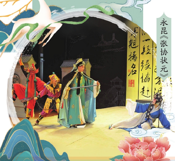 昨晚,“戏从温州来”专场演出率先亮相,《序·一梦千年》《南戏故里》《四时花开》《塘河戏韵》《时代之声》《尾声》六个篇章,汇集瓯剧、越剧、永昆、温州鼓词、民歌、木偶剧、少儿京剧多种艺术表演形式。舞美风格复刻温州九山书会的古朴优雅,意蕴深邃。