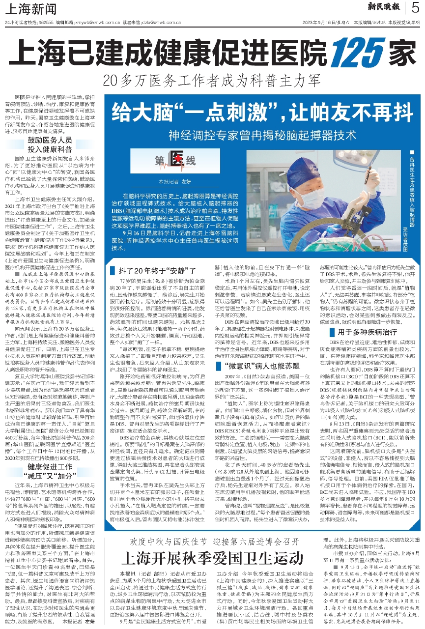 ■在成立上海市健康促进中心的基础上,全市16个区全部成立爱国卫生和健康促进中心,包括37家市级医院在内全市共有400多家公立医疗机构都成立健康促进委员会。目前全市已建成健康促进医院共125家,有更多医疗机构正在积极申报能够进入健康促进医院的行列,今年新增申报医疗机构数量就有上百家。