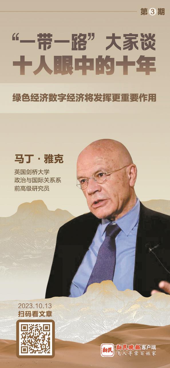 今年是“一带一路”倡议提出十周年。英国剑桥大学政治与国际关系系前高级研究员马丁·雅克在接受本报记者采访时表示,“一带一路”倡议是一个巨大的成功,尤其是为发展中国家的经济转型作出了贡献;放眼未来,绿色经济、互联网和数字经济将在“一带一路”项目中发挥更加重要的作用。