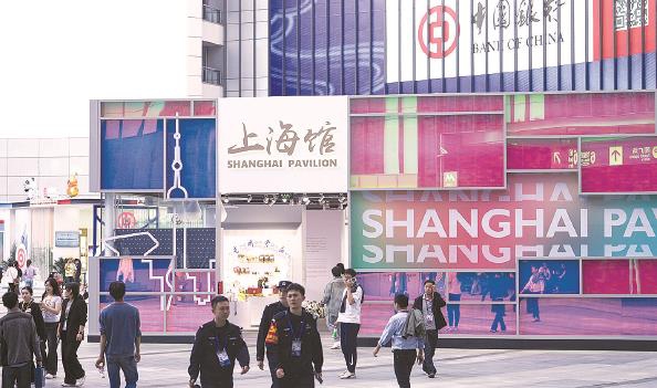 国家会展中心(上海)中央广场区域的上海馆已经布展完毕 本报记者 陈梦泽 摄