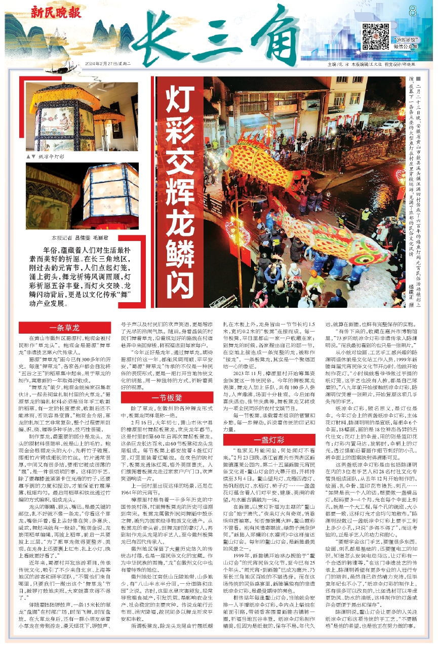 年俗,蕴藏着人们对生活最朴素而美好的祈愿。在长三角地区,刚过去的元宵节,人们点起灯笼,涌上街头,舞龙祈祷风调雨顺,灯彩祈愿五谷丰登,而灯火交映、龙鳞闪动背后,更是以文化传承“舞”动产业发展。