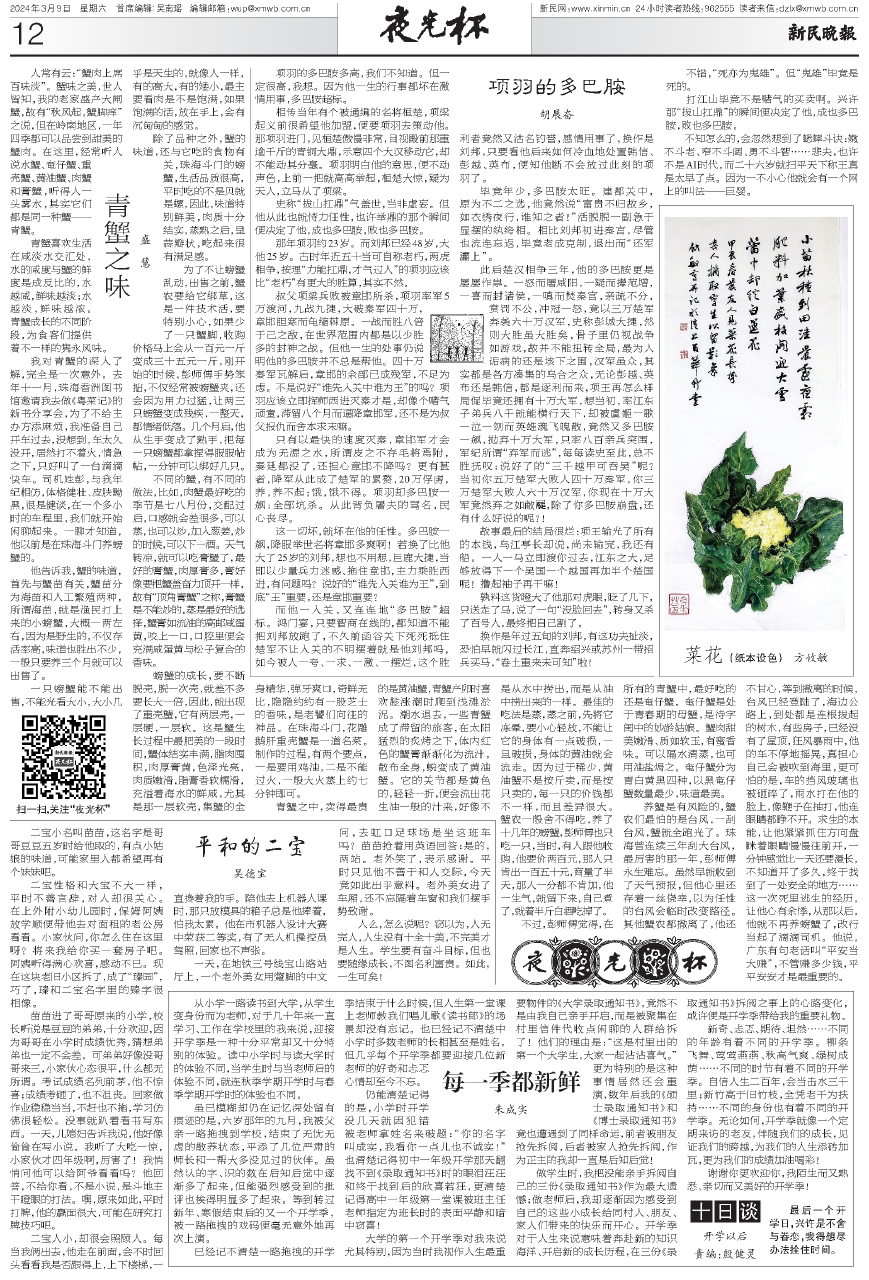 人常有云:“蟹肉上席百味淡”。蟹味之美,世人皆知,我的老家盛产大闸蟹,故有“秋风起,蟹脚痒”之说,但在岭南地区,一年四季都可以品尝到甜美的蟹肉。在这里,经常听人说水蟹、奄仔蟹、重壳蟹、黄油蟹、肉蟹和膏蟹,听得人一头雾水,其实它们都是同一种蟹——青蟹。