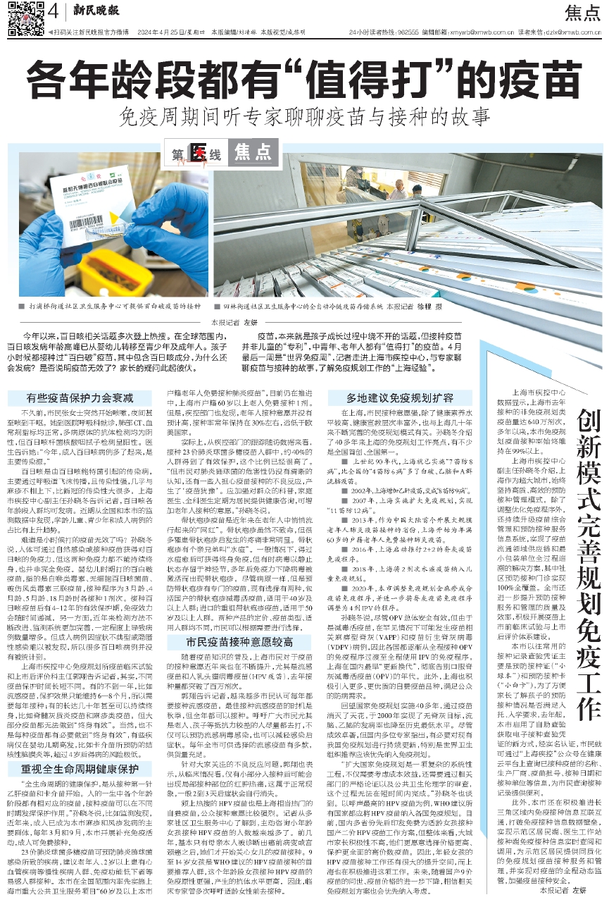 疫苗,本来就是孩子成长过程中绕不开的话题,但接种疫苗并非儿童的“专利”,中青年、老年人都有“值得打”的疫苗。4月最后一周是“世界免疫周”,记者走进上海市疾控中心,与专家聊聊疫苗与接种的故事,了解免疫规划工作的“上海经验”。
