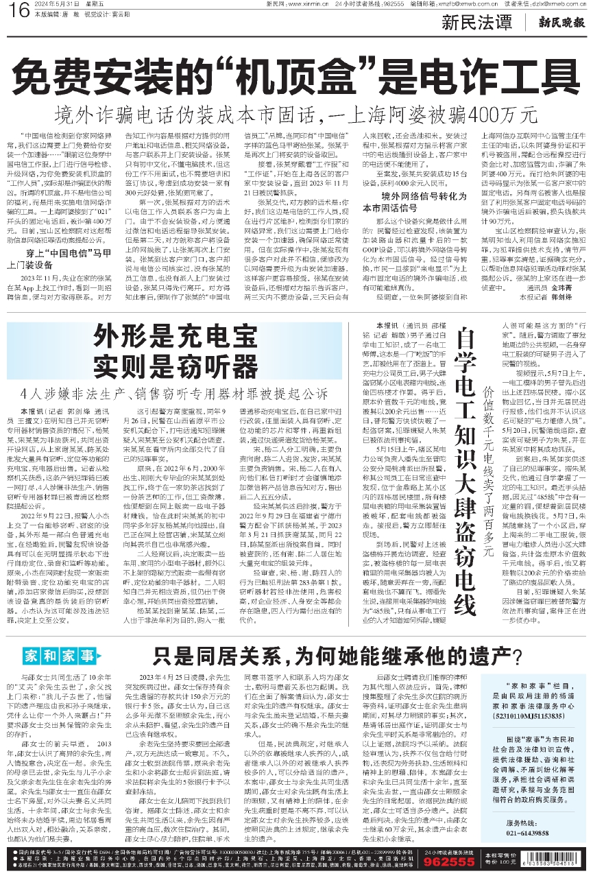 “中国电信检测到你家网络异常,我们这边需要上门免费给你安装一个加速器……”眼前这位身穿中国电信工作服,上门进行信号检修、升级网络,为你免费安装机顶盒的“工作人员”,实际却是诈骗团伙的帮凶。所谓的机顶盒,并不是电信公司的福利,而是用来实施电信网络诈骗的工具。一上海阿婆接到了“021”开头的固定电话后,被诈骗400万元。日前,宝山区检察院对这起帮助信息网络犯罪活动案提起公诉。