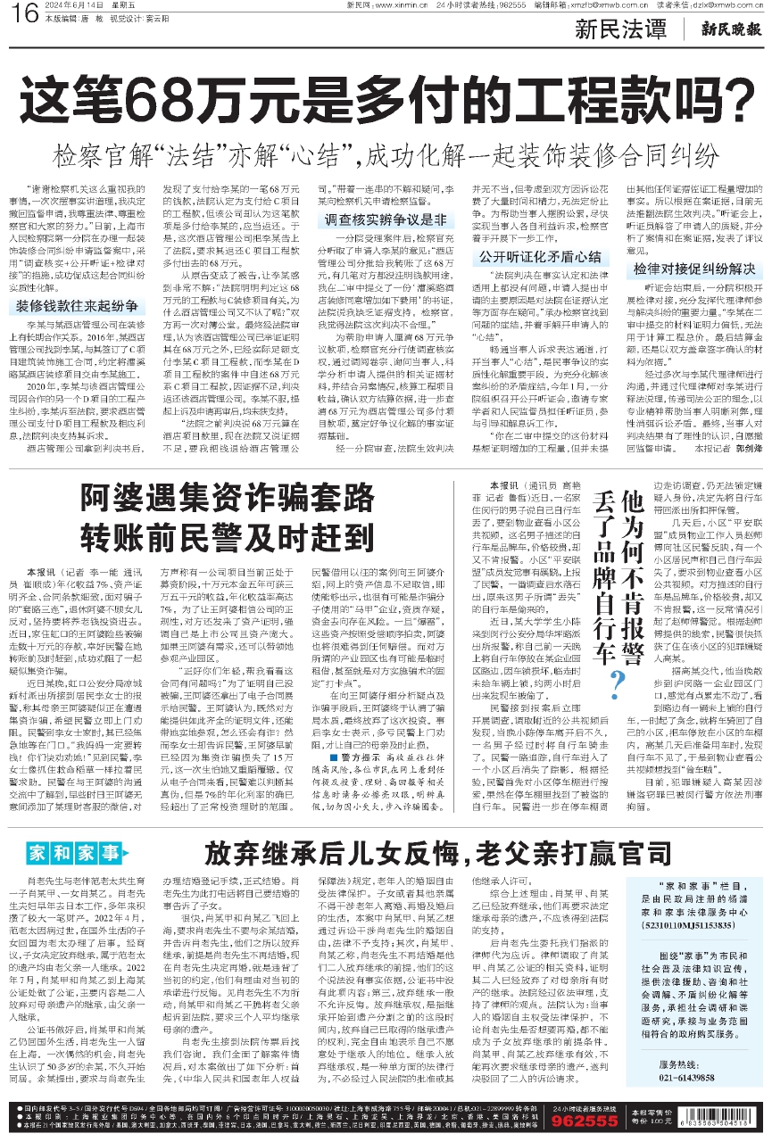 “谢谢检察机关这么重视我的事情,一次次摆事实讲道理,我决定撤回监督申请,我尊重法律、尊重检察官和大家的努力。”日前,上海市人民检察院第一分院在办理一起装饰装修合同纠纷申请监督案中,采用“调查核实+公开听证+检律对接”的措施,成功促成这起合同纠纷实质性化解。