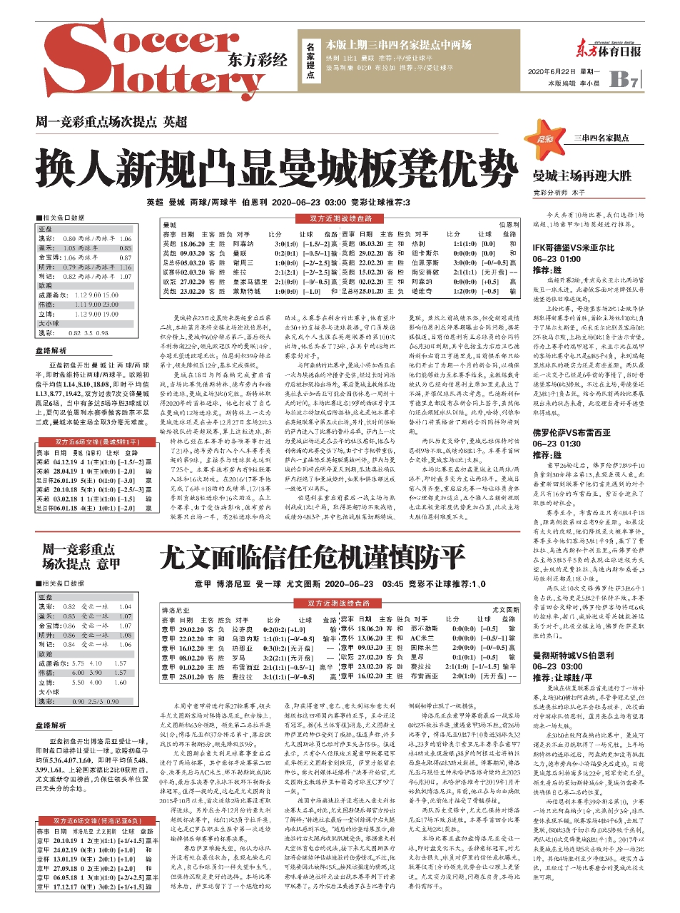 英超 曼城 两球/两球半 伯恩利2020-06-23 03:00竞彩让球推荐:3