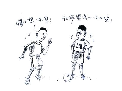 ●在今年中超联赛里,上海上港的大牌外援“思考人生”的不少。“小金人”奥斯卡是首推的一位。在多场比赛中,奥斯卡得球停球之后面对了对方球员开始“思考人生”。防守他的对手也不进也不退,与奥斯卡对峙,这样的镜头真是不少。一支球队指挥进攻的灵魂人物突然间的“思考人生”,使得全场的推进都停顿下来。有评论为奥斯卡辩解称,那是前方队友跑位不到、穿插不够,使得他无从立即分球、吊球、打身后。哈哈,“思考人生”还有理有据了。对此无话可说,过于偏爱奥斯卡了吧。