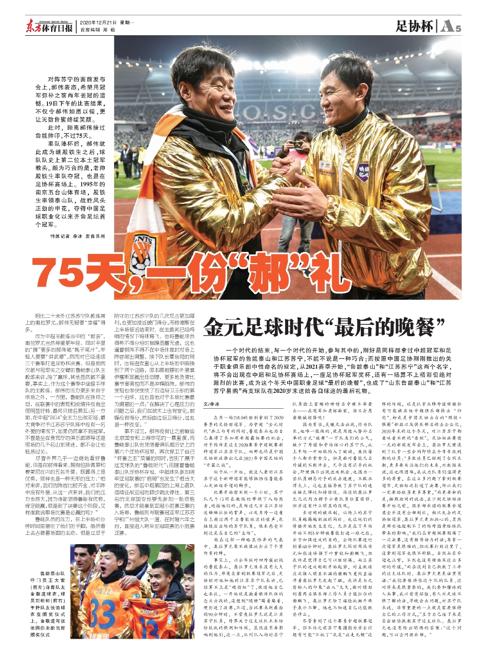率队捧杯后,郝伟就此成为继殷铁生之后,球队队史上第二位本土冠军教头。颇为巧合的是,老帅殷铁生率队夺冠,也是在足协杯赛场上。1995年的南京五台山体育场,殷铁生率领泰山队,战胜风头正劲的申花,夺得中国足球职业化以来齐鲁足坛首个冠军。