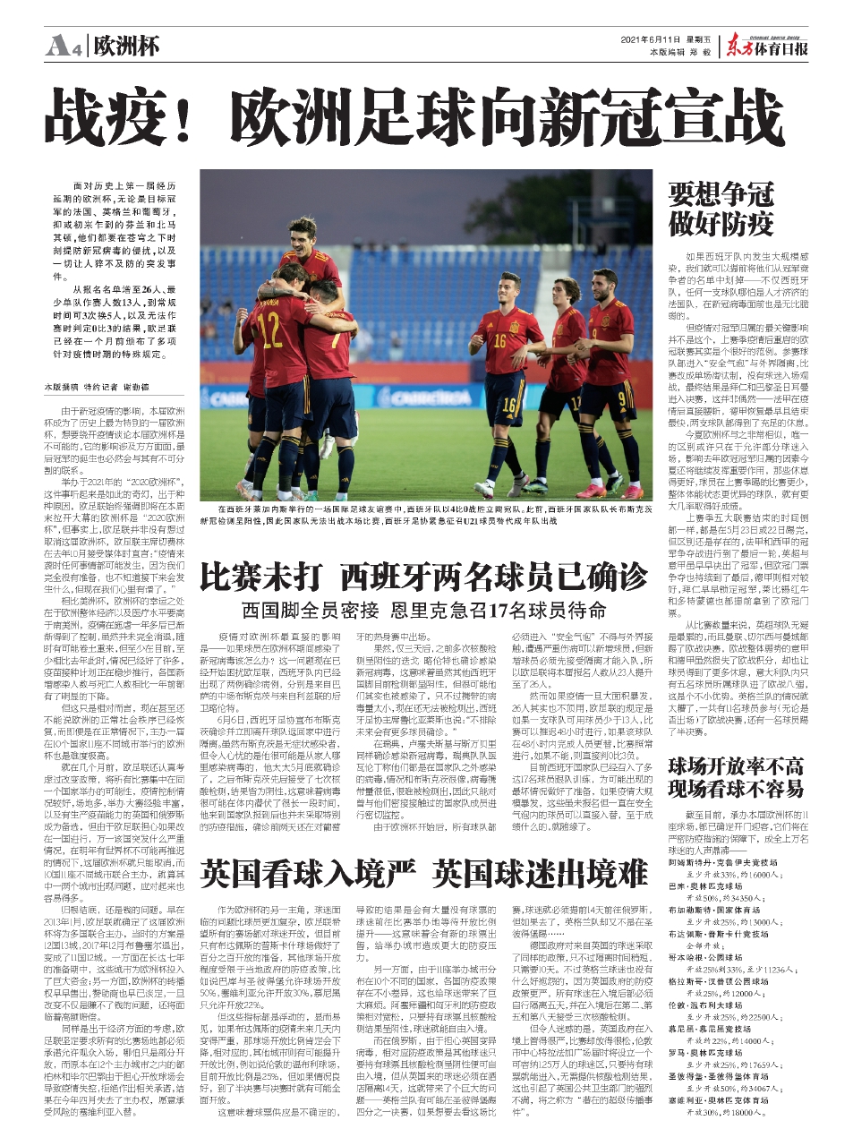 如果西班牙队内发生大规模感染,我们就可以提前将他们从冠军竞争者的名单中划掉——不仅西班牙队,任何一支球队哪怕是人才济济的法国队,在新冠病毒面前也是无比脆弱的。