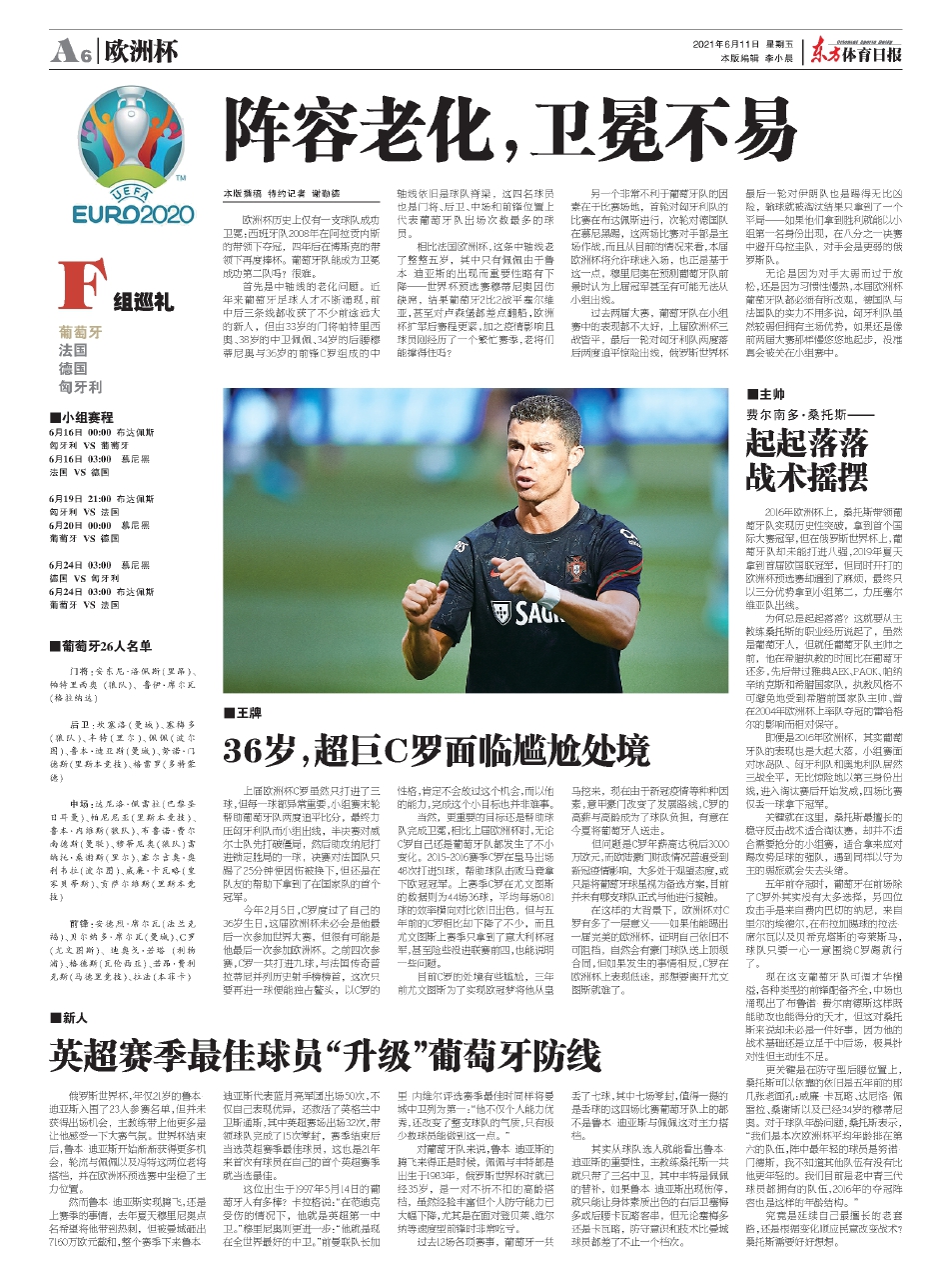 相比法国欧洲杯,这条中轴线老了整整五岁,其中只有佩佩由于鲁本·迪亚斯的出现而重要性略有下降——世界杯预选赛穆蒂尼奥因伤缺席,结果葡萄牙2比2战平塞尔维亚,甚至对卢森堡都差点翻船,欧洲杯扩军后赛程更紧,加之疫情影响且球员刚经历了一个繁忙赛季,老将们能撑得住吗?