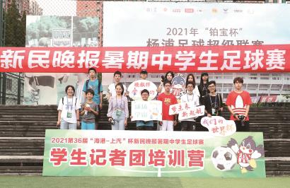 烈日炎炎,2021第36届“海港-上汽”杯新民晚报暑期中学生足球赛激战正酣。继新疆赛区的巴楚三中、莎车八中率先拿到8月会师上海参加全国争霸赛的名额后,长三角的台州赛区和苏州赛区也先后决出冠军。在上海,各分赛区赛事亦燃情开战,作为新民晚报杯特色之一的学生记者培训营也在杨浦分赛区开启了“见习”之旅。