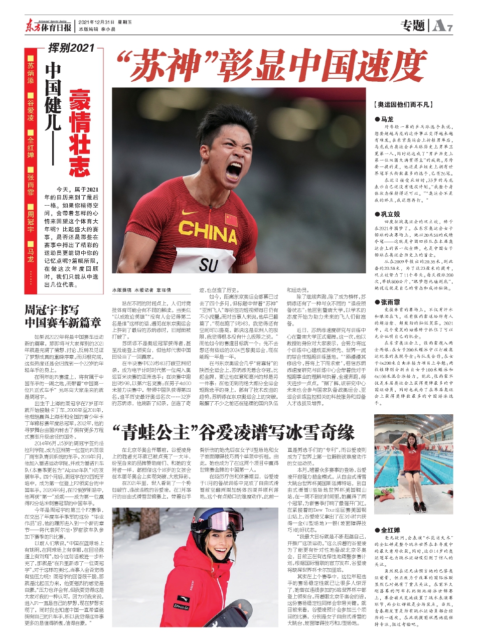 今天,属于2021年的日历来到了最后一格。如果你稍得空闲,会带着怎样的心情来回望这个体育大年呢?比起盛大的赛事,是否还是那些在赛事中搏出了精彩的运动员更能切中你的记忆点呢?篇幅所限,在做这次年度回顾时,我们只能从中选出几位代表。