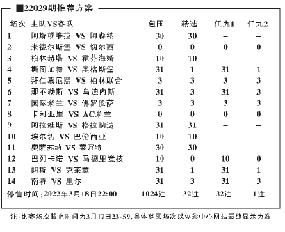 周六、周日的比赛几乎集合了五大联赛的所有场次。本期胜负彩“14选9”由1场英超、1场英足总杯、3场德甲、3场意甲、4场西甲以及2场法甲联赛构成。场次依然分散,但较上一期的难度已经大幅度降低。国际比赛日即将到来,这是喜欢五大联赛的购彩者为数不多的机会。