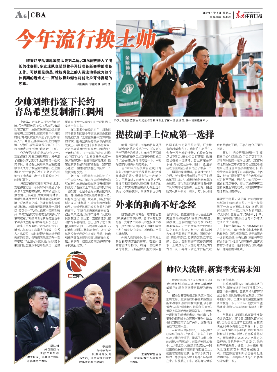 事实上,相较于寻找新任主帅,提拔副手如今已经成为了更多着手于换帅的球队的第一选择。此前,北京首钢助理教练解立彬就曾在时任主教练雅尼斯无法返回中国执教的情况下,临危受命率队挺进了CBA半决赛。上赛季,浙江广厦扶正了前任主教练李春江的副手王博,而这位少帅在第一个正式的菜鸟赛季,交出了常规赛第二名和联赛亚军的成绩,同时荣膺赛季最佳教练员的称号。
