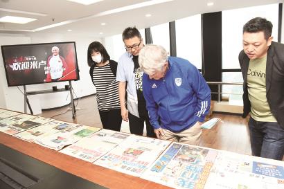 10月22日上午,中国足球的“老朋友”带着他专属的开朗、幽默与随性做客《东方体育日报》,作为此次中国行的重要一站。略微泛黄的报纸如电影胶片般在米卢眼前一一展开,照片、文字和时间的印记将一群人生命中仅此一次的高光回忆有处安放。
