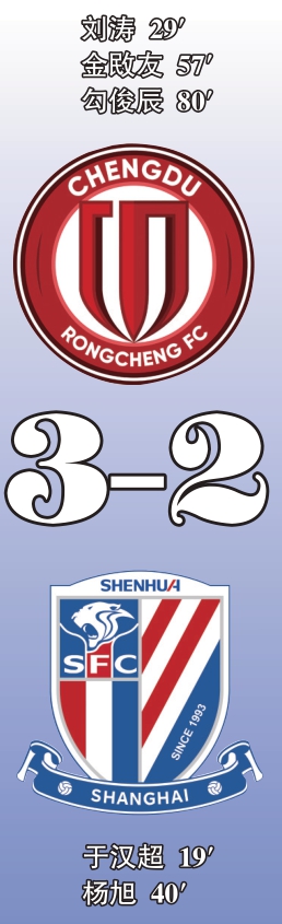 申花2比3不敌成都蓉城,在退场时,几名成都球迷打开手机认真看了一眼最新的积分榜,其中一人激动地说道:“我们和第四名只差3分喽!”而第四名就是刚刚被他们逆转的申花。