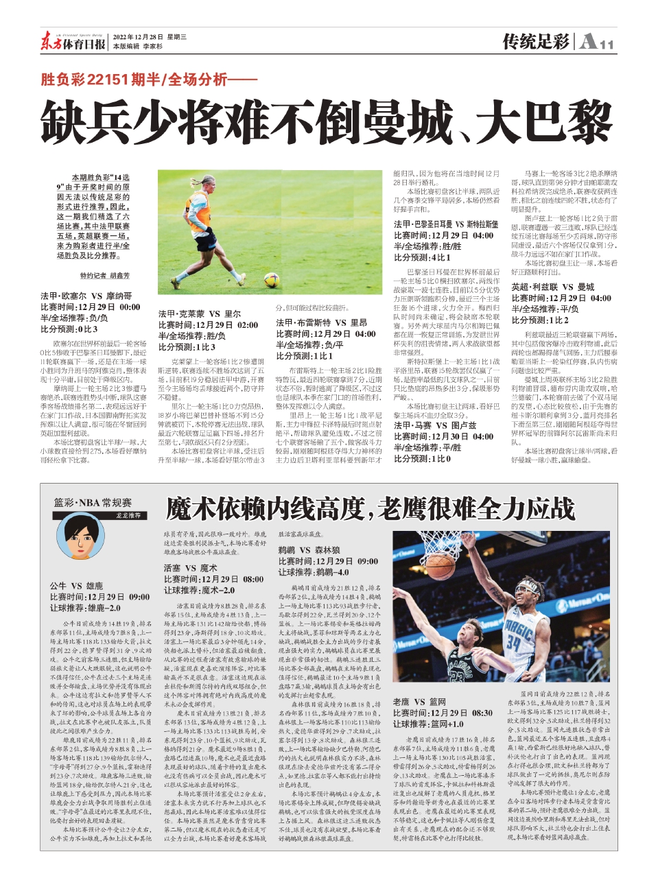 本期胜负彩“14选9”由于开奖时间的原因无法以传统足彩的形式进行推荐,因此,这一期我们精选了六场比赛,其中法甲联赛五场,英超联赛一场,来为购彩者进行半/全场胜负及比分推荐。