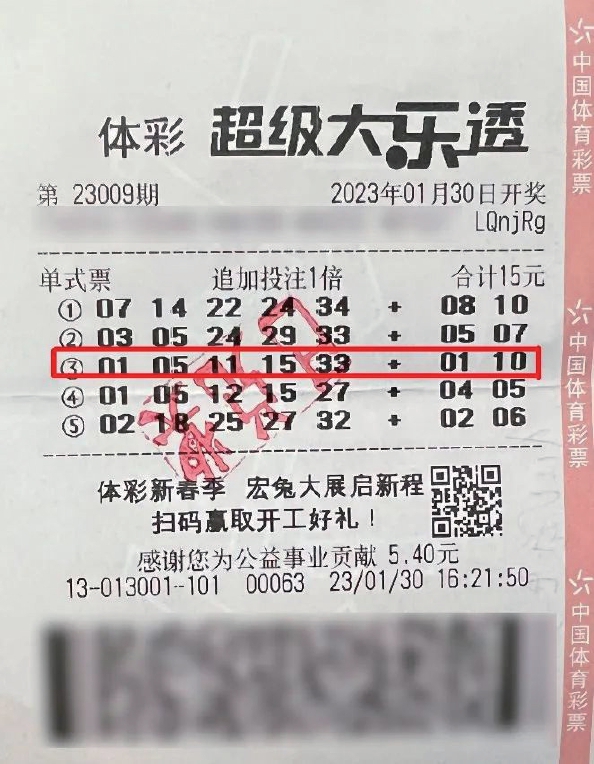 跨过癸卯农历新年,体彩彩市恢复销售后的第一期大乐透开奖,来自上海嘉定区的购彩者就迎来了兔年开门红,仅凭借一张追加投注1倍,单票金额为15元的大乐透单式票,一举擒下超级大乐透1800万大奖。由于这位上海嘉定区的购彩者采用了追加投注,所以奖金成色十足,在单注一等奖方面多拿了800万元追加奖金,从而收获单注1800万元追加投注一等奖。