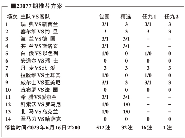 注:比赛场次截止时间为6月13日23:59,具体购买场次以体彩中心网站最终显示为准