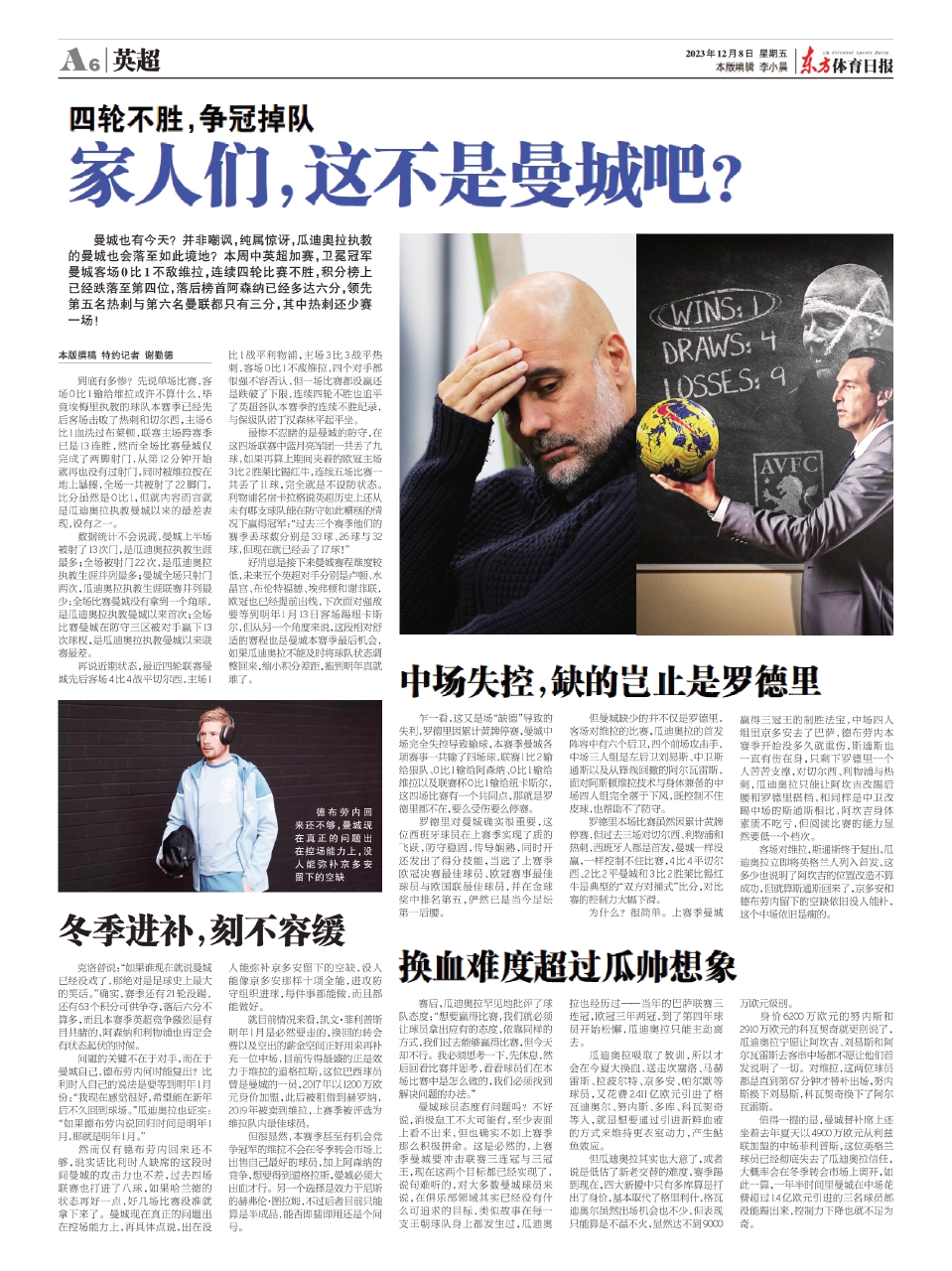 值得一提的是,曼城替补席上还坐着去年夏天以4900万欧元从利兹联加盟的中场菲利普斯,这位英格兰球员已经彻底失去了瓜迪奥拉信任,大概率会在冬季转会市场上离开,如此一算,一年半时间里曼城在中场花费超过1.4亿欧元引进的三名球员都没能踢出来,控制力下降也就不足为奇。
