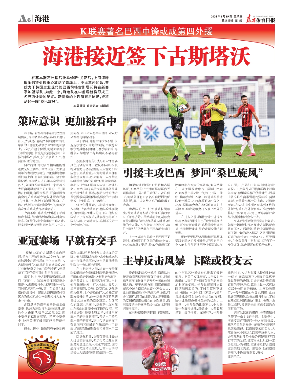 如果能够顺利签下尤萨和古斯塔沃,新赛季的上汽浦东足球场内无疑将刮起一阵“桑巴旋风”。曾几何时,海港队拥有过多名来自巴西的优秀外援,其中大多数人也的确取得了成功。