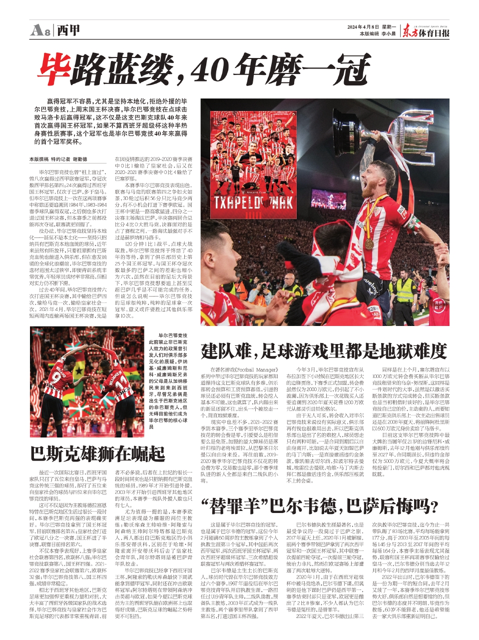 赢得冠军不容易,尤其是坚持本地化,拒绝外援的毕尔巴鄂竞技,上周末国王杯决赛,毕尔巴鄂竞技在点球击败马洛卡后赢得冠军,这不仅是这支巴斯克球队40年来首次赢得国王杯冠军,如果不算西班牙超级杯这种半热身赛性质赛事,这个冠军也是毕尔巴鄂竞技40年来赢得的首个冠军奖杯。