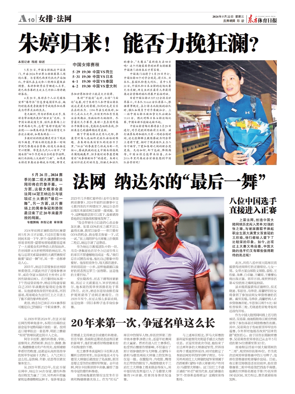 4月28日,朱婷在个人社交媒体宣布“爆炸性”信息重返国家队后,她何时能再度身披国字号战袍参加比赛成为外界关注的焦点。