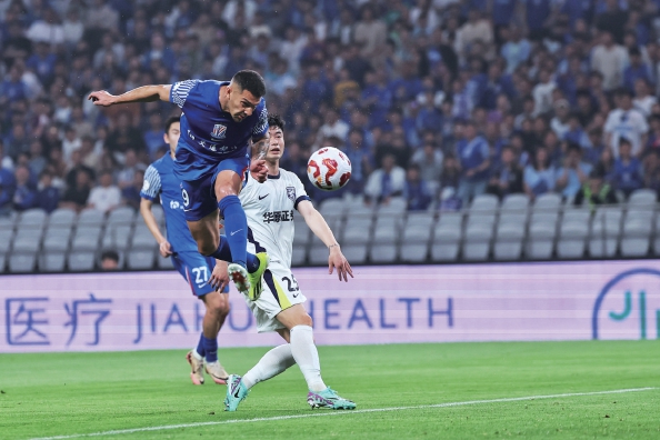 启动、助跑、起脚,路易斯毫无犹豫地将皮球射向了邵镤亮所在的球门左侧一方。很难说,在向球门运行的过程中,路易斯射出的球有没有发生变向,但最终却幸运地打在已经倒地的邵镤亮的脚上之后弹进了球门,帮助申花队2比0锁定了胜局。