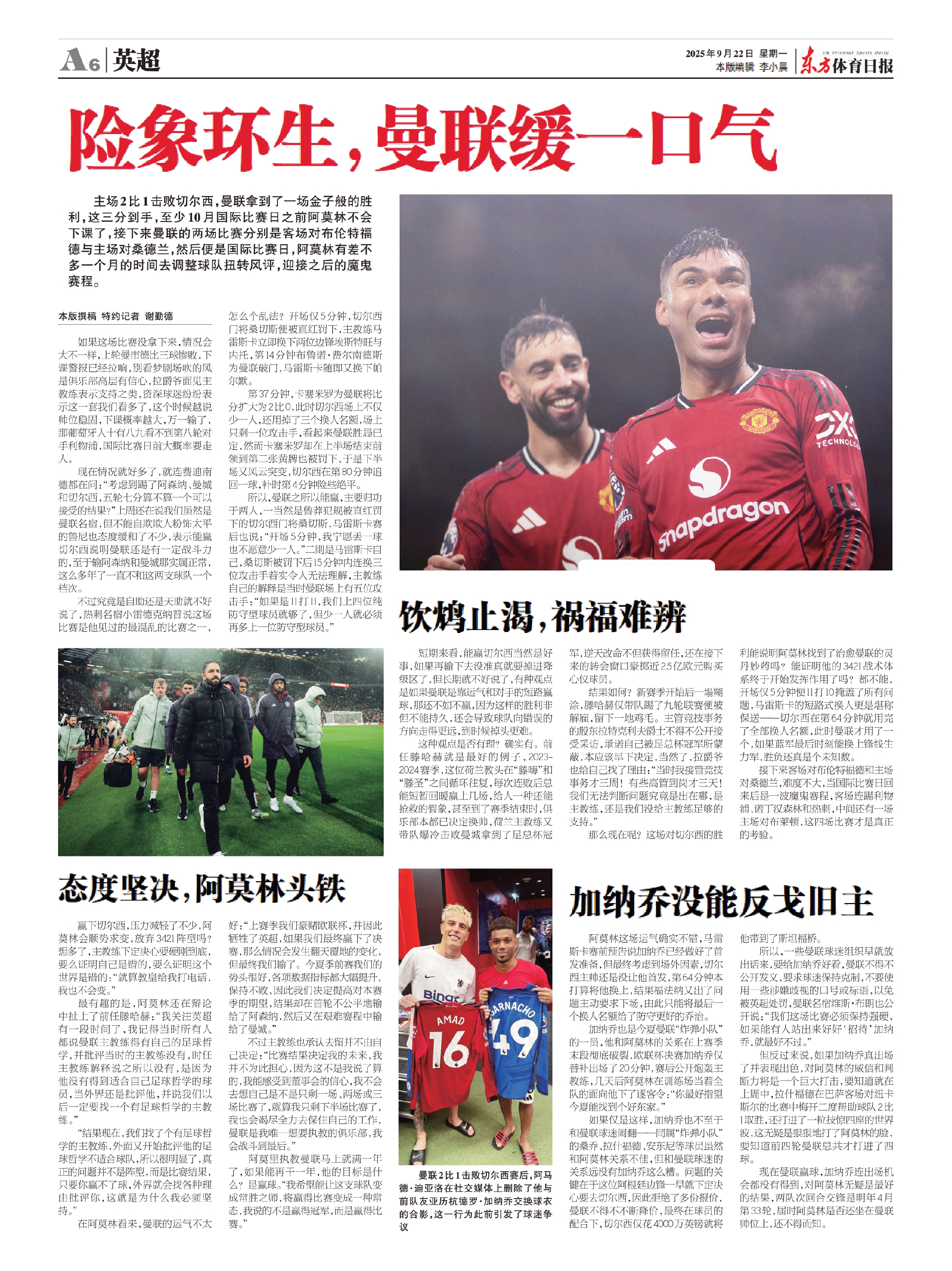 主场2比1击败切尔西,曼联拿到了一场金子般的胜利,这三分到手,至少10月国际比赛日之前阿莫林不会下课了,接下来曼联的两场比赛分别是客场对布伦特福德与主场对桑德兰,然后便是国际比赛日,阿莫林有差不多一个月的时间去调整球队扭转风评,迎接之后的魔鬼赛程。