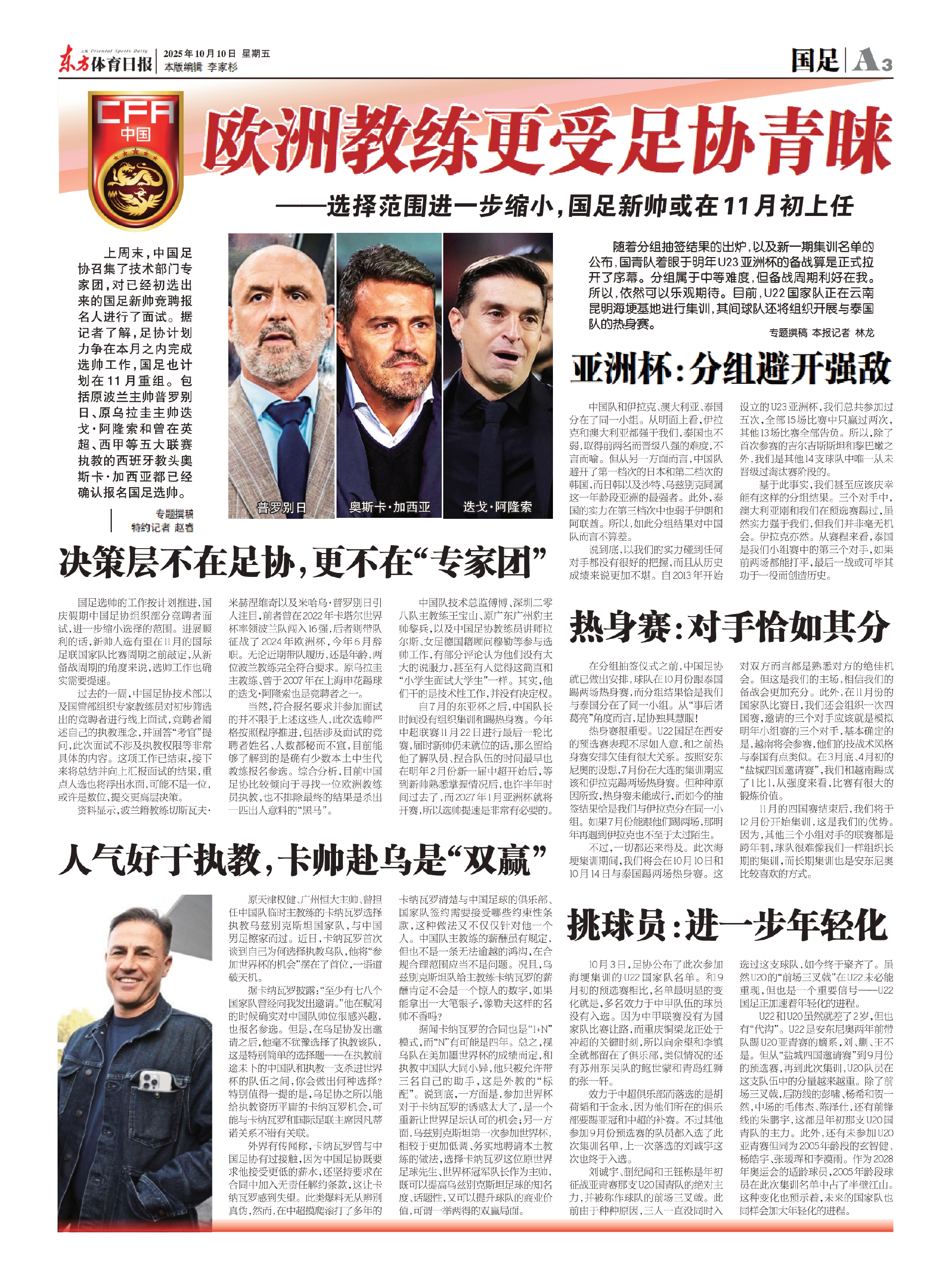 当然,符合报名要求并参加面试的并不限于上述这些人,此次选帅严格按照程序推进,包括涉及面试的竞聘者姓名、人数都秘而不宣,目前能够了解到的是确有少数本土中生代教练报名参选。综合分析,目前中国足协比较倾向于寻找一位欧洲教练员执教,也不排除最终的结果是杀出一匹出人意料的“黑马”。