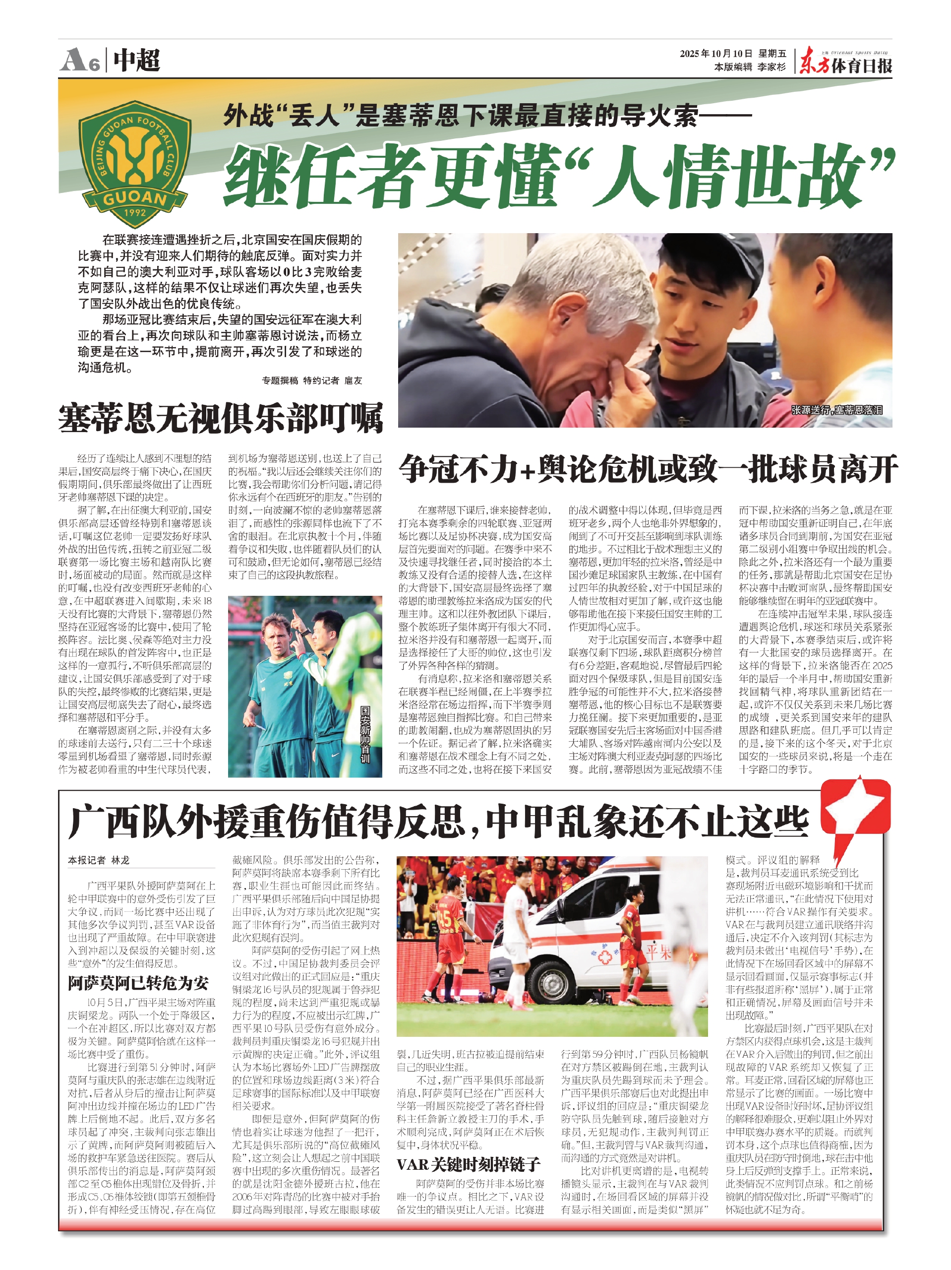 那场亚冠比赛结束后,失望的国安远征军在澳大利亚的看台上,再次向球队和主帅塞蒂恩讨说法,而杨立瑜更是在这一环节中,提前离开,再次引发了和球迷的沟通危机。