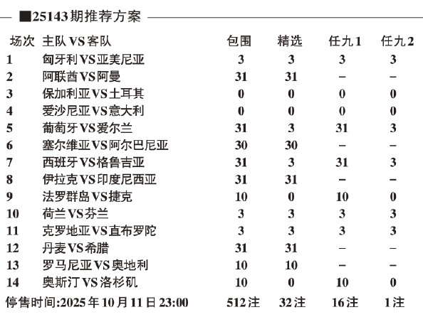 注:比赛场次截止时间为10月9日23:59,具体购买场次以体彩中心网站最终显示为准