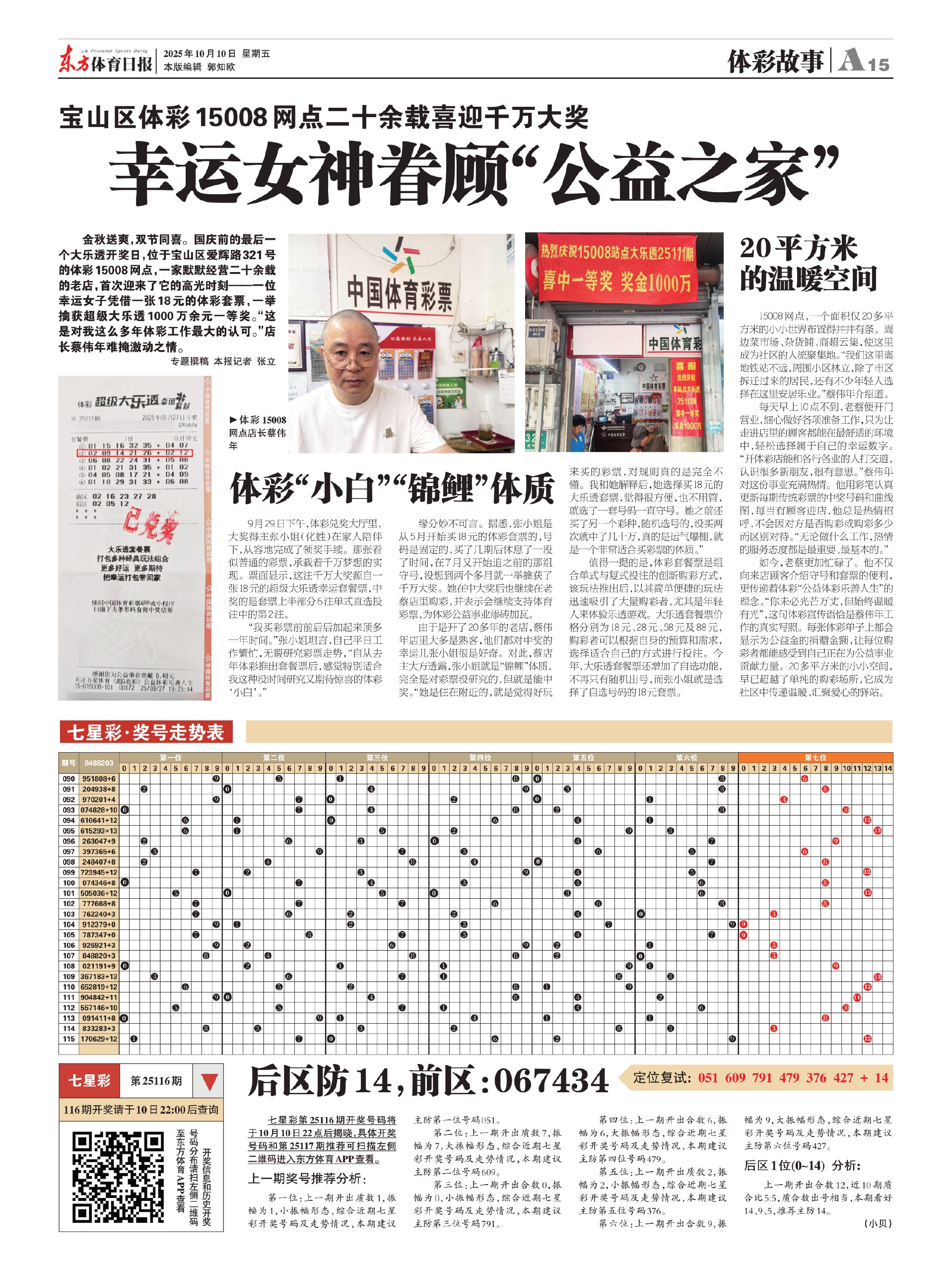 金秋送爽,双节同喜。国庆前的最后一个大乐透开奖日,位于宝山区爱辉路321号的体彩15008网点,一家默默经营二十余载的老店,首次迎来了它的高光时刻——一位幸运女子凭借一张18元的体彩套票,一举擒获超级大乐透1000万余元一等奖。“这是对我这么多年体彩工作最大的认可。”店长蔡伟年难掩激动之情。