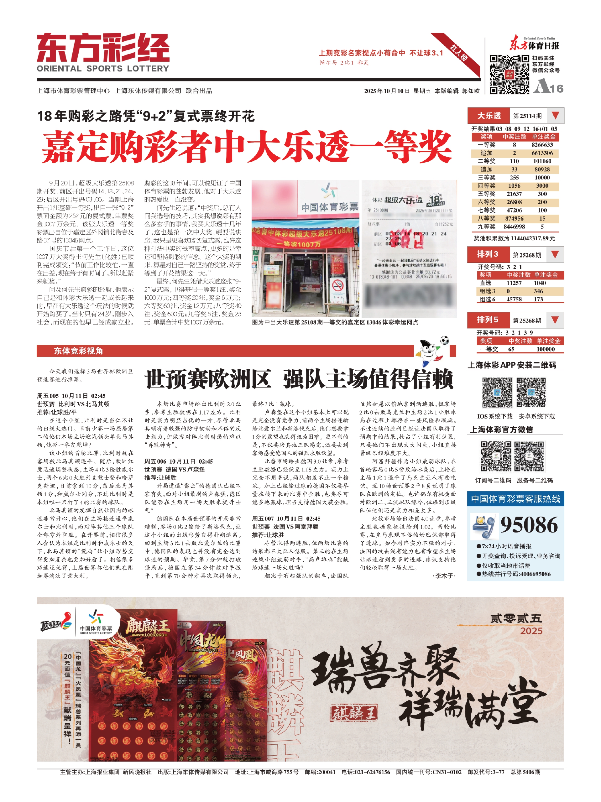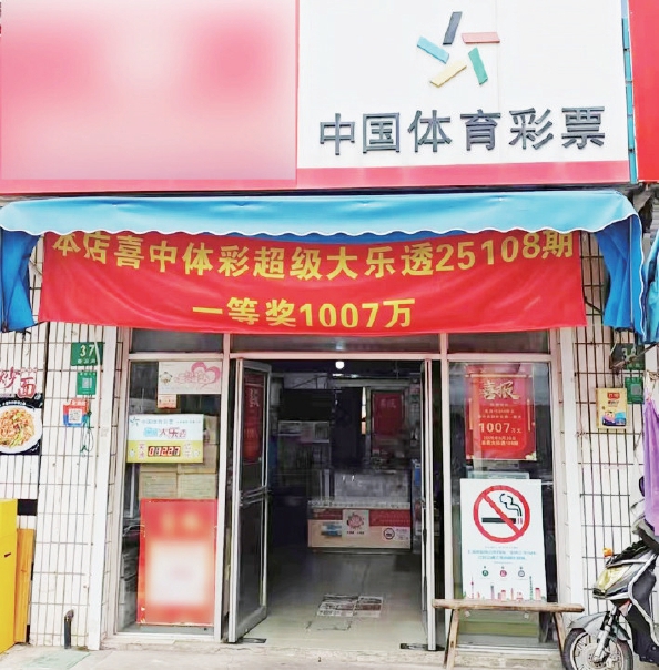 图为中出大乐透第25108期一等奖的嘉定区13046体彩幸运网点