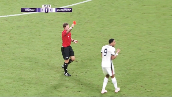 有人指出,古斯塔沃的这张红牌有为上半场陈威出击“还债”的意思,当时傅欢一脚回传失误,陈威第一时间出击却没能踢到皮球,而一名广岛三箭的进攻球员在冲刺过程中摔倒。那一刻,不少人都不禁倒吸一口冷气,因为一旦陈威触碰到了对手球员,那么此球很可能被认定为红牌动作。可随着VAR介入后,主裁不久就示意比赛继续。