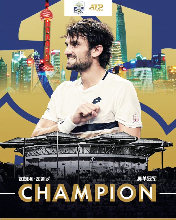 决赛共耗时2小时14分钟,瓦舍罗展现出了惊人的体能储备,连续赢得9场比赛后仍未见体能极限。这个身高1米93的大个子,确实是摩纳哥的荣耀。夺冠后,瓦舍罗在镜头前写下:外公外婆一定会很骄傲。冠军为其带来1000积分和约112万美元(约合799万人民币)奖金,世界排名将跃升至前40。上海大师赛“超级挚友”费德勒也来到决赛现场,见证新王诞生。2026年,旗忠网球中心将为瓦舍罗制作新的兵马俑,这是上海大师赛对冠军的传统礼遇,象征着对胜利者的最高致敬。