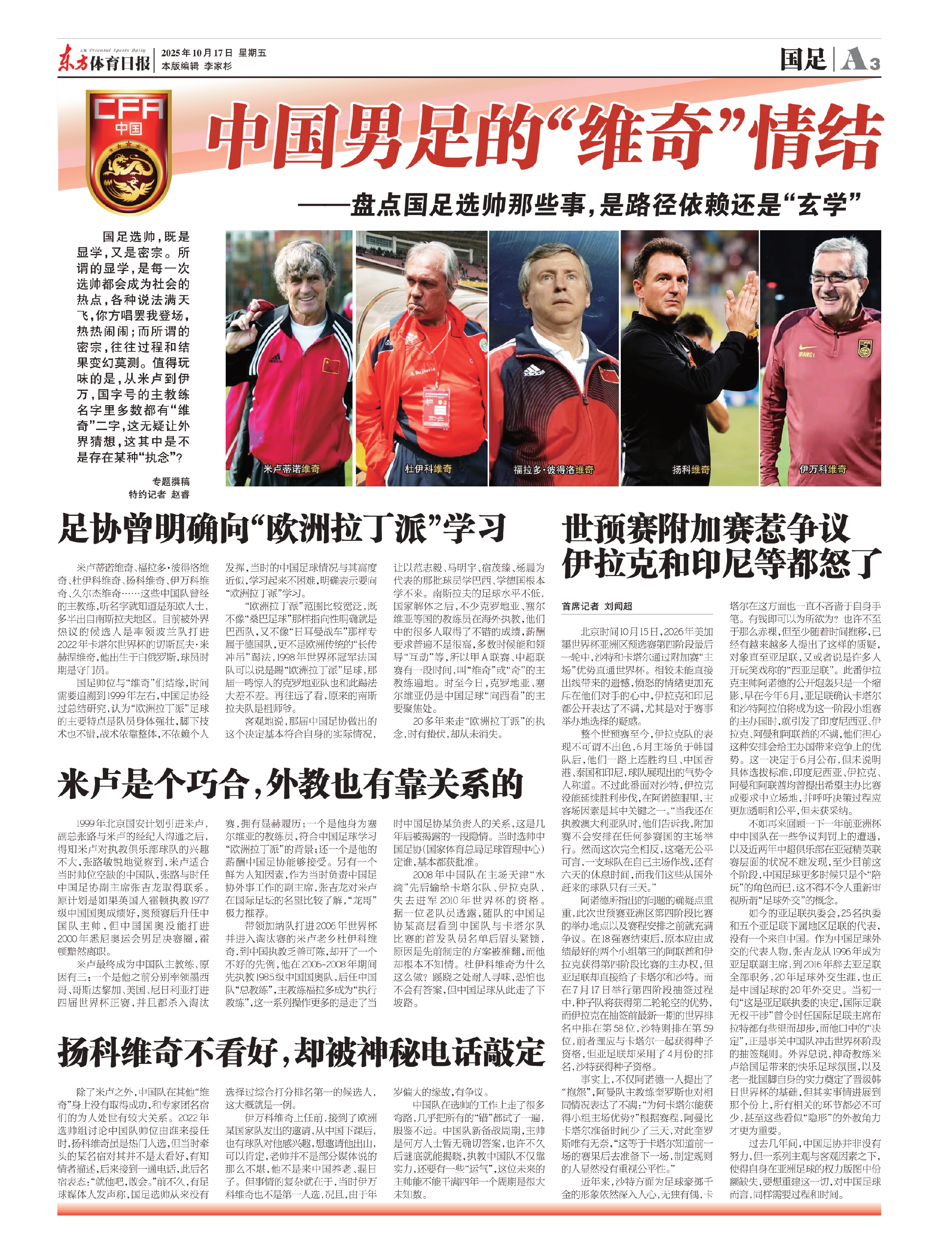 除了米卢之外,中国队在其他“维奇”身上没有取得成功,和专家团名宿们的为人处世有较大关系。2022年选帅组讨论中国队帅位由谁来接任时,扬科维奇虽是热门人选,但当时牵头的某名宿对其并不是太看好,有知情者描述,后来接到一通电话,此后名宿表态:“就他吧,散会。”前不久,有足球媒体人发声称,国足选帅从来没有选择过综合打分排名第一的候选人,这大概就是一例。