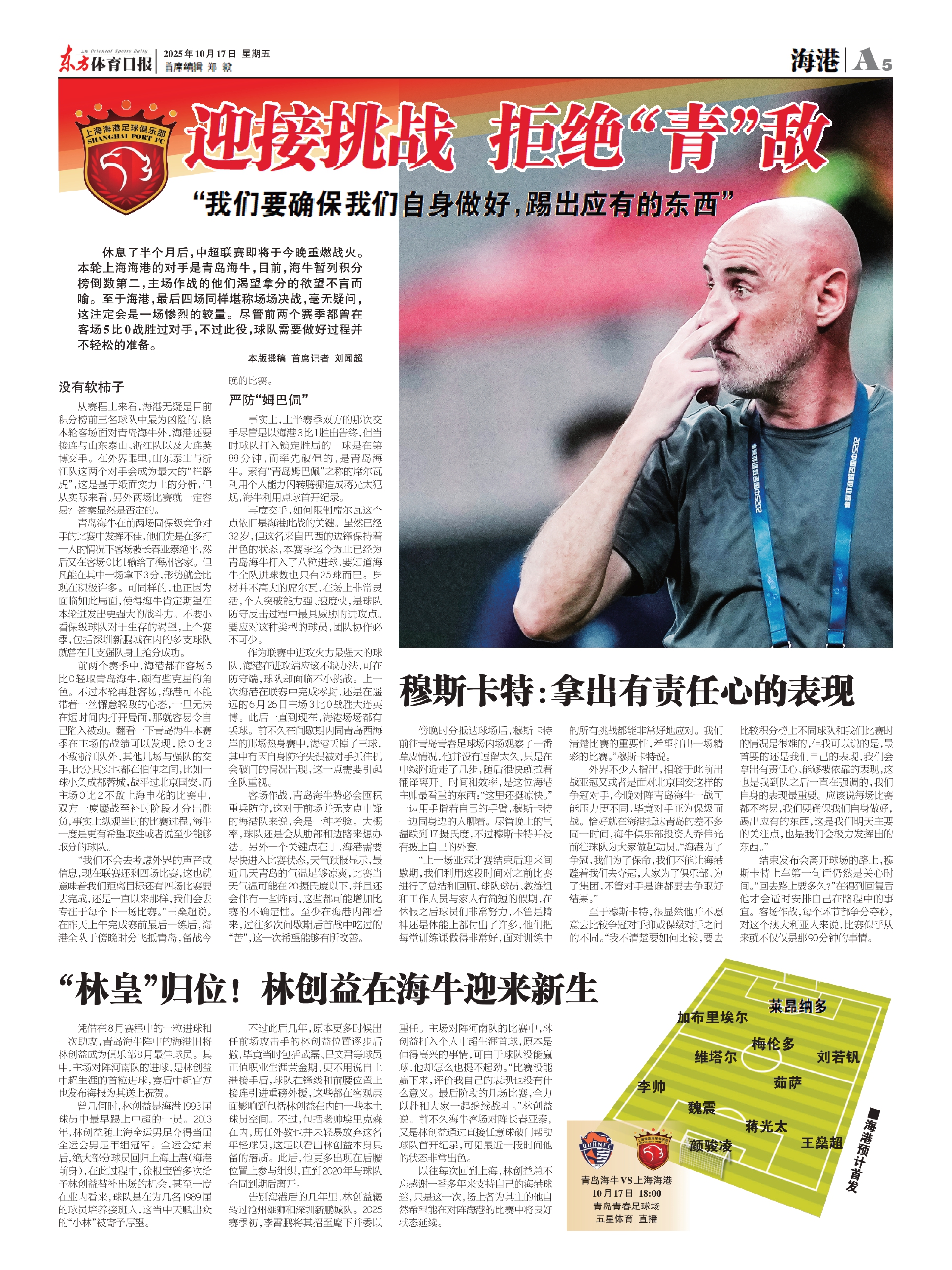 以往每次回到上海,林创益总不忘感谢一番多年来支持自己的海港球迷,只是这一次,场上各为其主的他自然希望能在对阵海港的比赛中将良好状态延续。