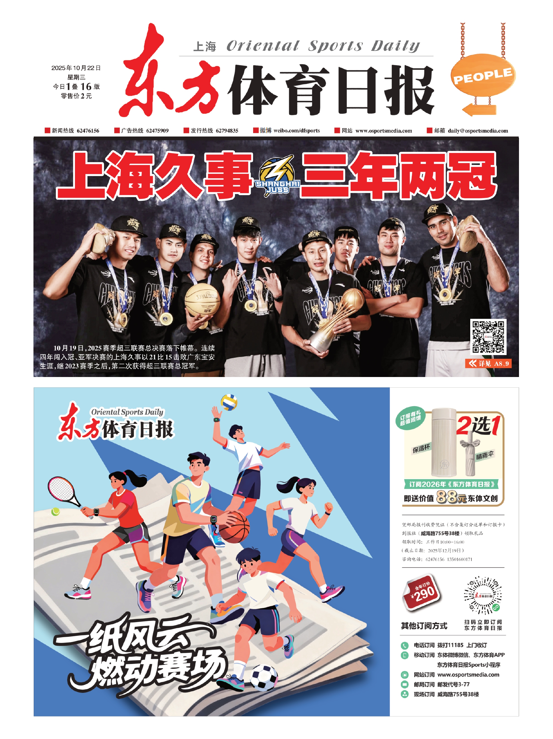 10月19日,2025赛季超三联赛总决赛落下帷幕。连续四年闯入冠、亚军决赛的上海久事以21比15击败广东宝安生涯,继2023赛季之后,第二次获得超三联赛总冠军。 详见 A8、9