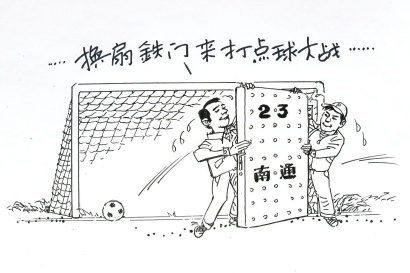 半决赛的第二场是南通队主场来战无锡队,常规时间0比0,双方又走上了点球点。南通队在补时第1分钟时就换上了第二门将23号蔡天龙。这个20岁的门将在点球大战的第一、第二轮就扑出了无锡队的足球了。这使得南通队以4比2力克无锡队。小辰光去无锡踏青,总归要在火车站里买几篓无锡肉骨头回上海送送亲友的。甜咪咪的无锡肉骨头拔南通人尝鲜哉。南通对泰州的决赛为11月1日在南京举行。届时央5一定会直播的。