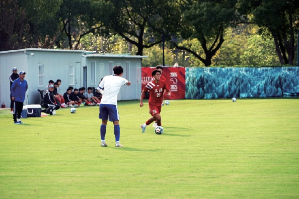 9月底,徐根宝率“残兵”去蔚山打比赛。和前几年拉练相比,这次他们遭遇了实力更强的韩国K联赛梯队,6场热身赛非负即平。固然锻炼了球队的防线,但是中前场的问题更为凸显。回到国内,徐根宝突击训练短传和定位球防守,力求在短时间内提升球队整体实力。随后,他继续安排了系列热身,包括离沪之前在世纪公园打的两场——10月22日下午对海港B队,23日下午对河北全运队。之前的突击训练加上张俊杰等主力球员回归,球队的攻防确实有所起色,但还是无法取得一胜,根宝只有长叹“巧妇难为无米之炊”了,“抓了短传,前插又没了。防守节奏上去了,但不默契的情况还是会出现,一出现就丢球!主力前锋不在队中,整体磨合就只能大打折扣!”