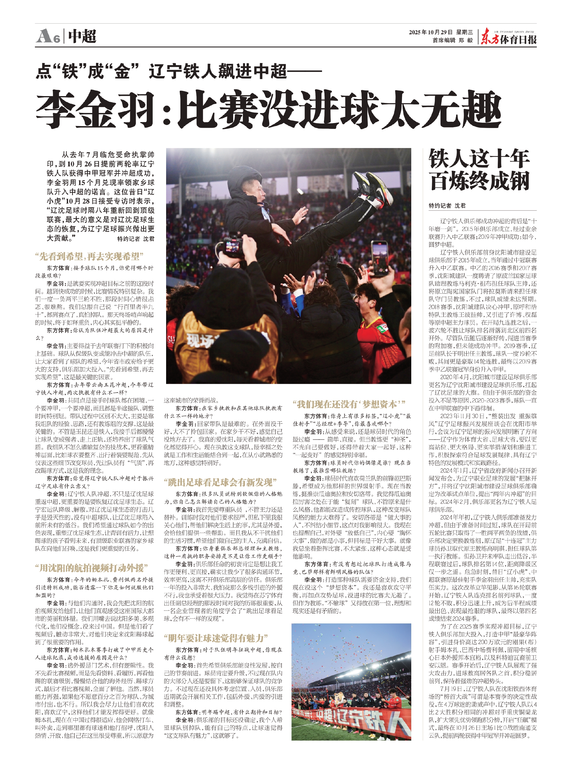 从去年7月临危受命执掌帅印,到10月26日提前两轮率辽宁铁人队获得中甲冠军并冲超成功,李金羽用15个月兑现率领家乡球队升入中超的诺言。这位昔日“辽小虎”10月28日接受专访时表示,“辽沈足球时隔八年重新回到顶级联赛,最大的意义是对辽沈足球生态的恢复,为辽宁足球振兴做出更大贡献。” 特约记者 沈君